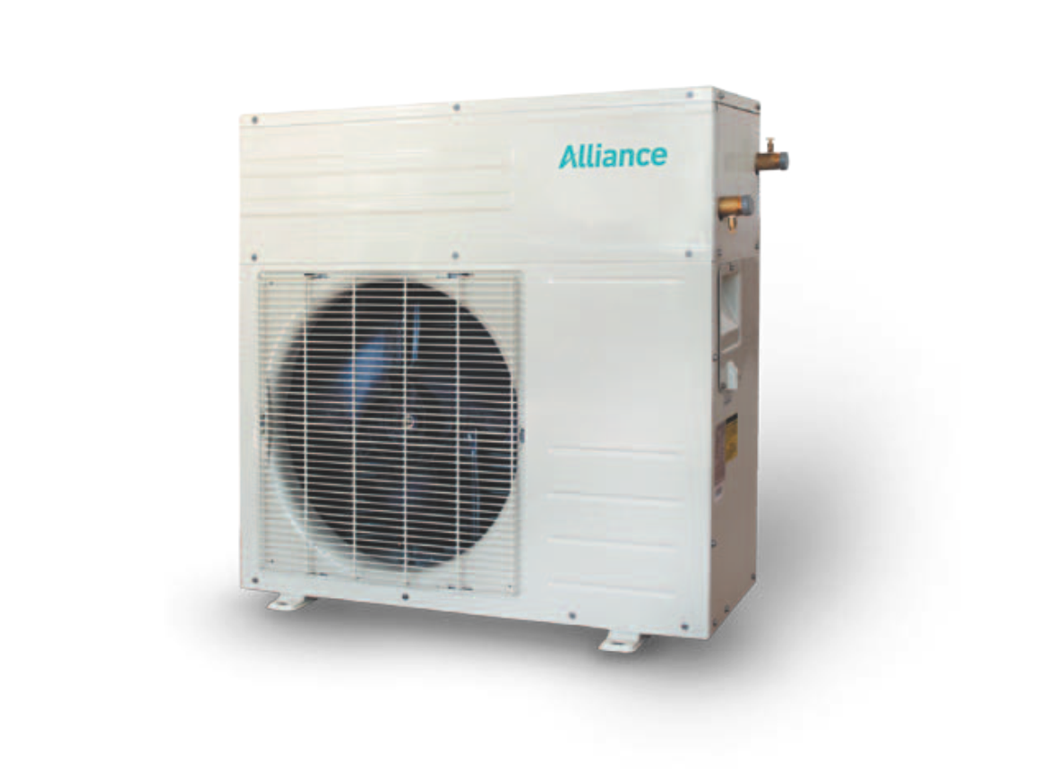The domestic Alliance units comfortably heat from 100 litres to 500 litres of water. For commercial use, as a result of the modularity of Alliance Heat Pumps, many units can be linked together to supply up to thousands of litres of hot water per hour. Water temperature as well as heating periods can be adjusted via a wired controller to meet specific hot water demands. Pool Heat Pumps are also available.
